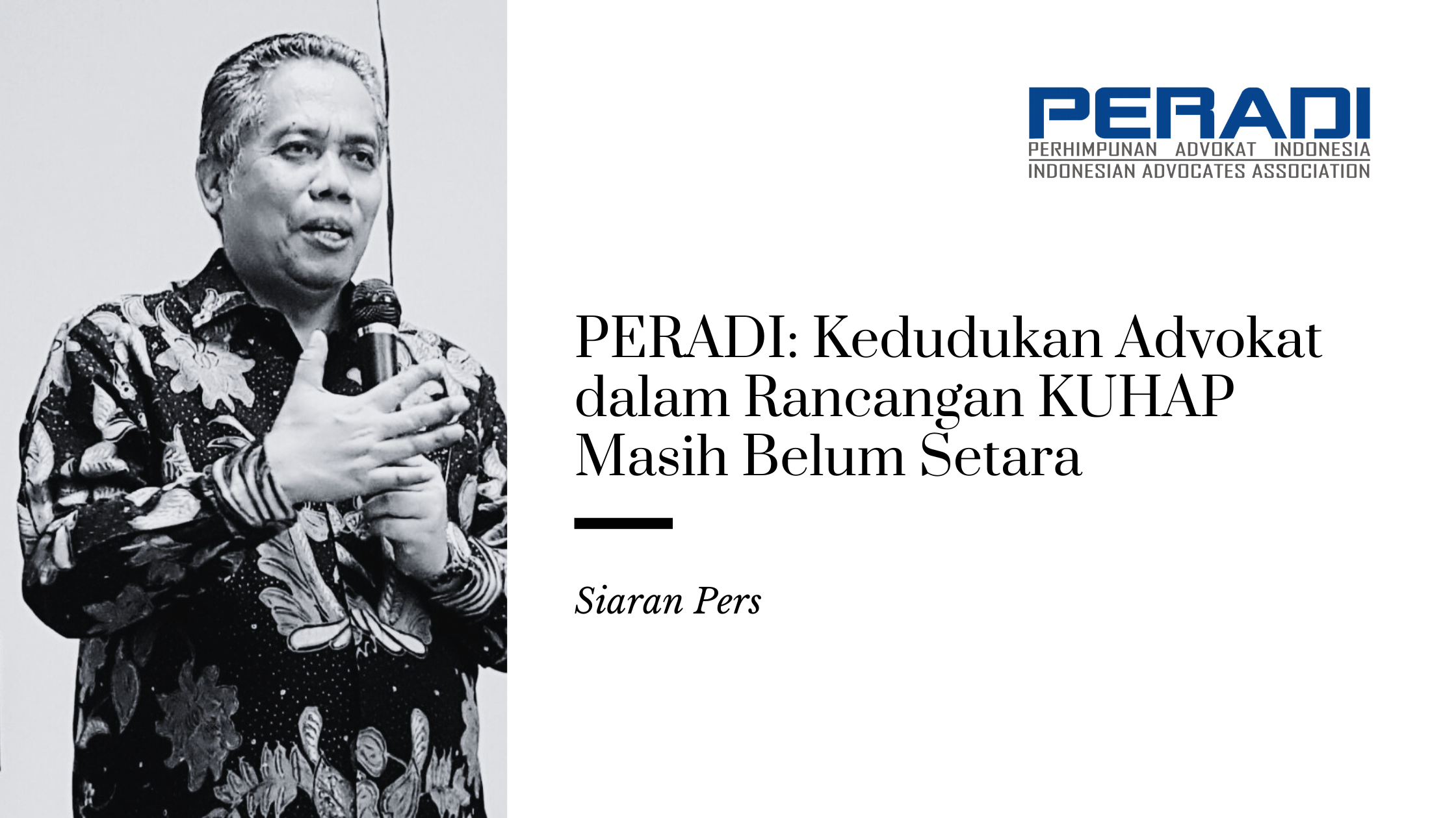 Rancangan Kitab Undang-Undang Hukum Acara Pidana (R-KUHAP) memang banyak menyebut advokat, namun kedudukan profesi ini sebagai penegak hukum masih belum diakui setara. Perhimpunan Advokat Indonesia (PERADI) menilai, rancangan yang baru disepakati di tingkat I oleh Komisi III DPR dan Pemerintah itu masih mewarisi paradigma lama yang menempatkan penyidik sebagai pusat kekuasaan dalam proses peradilan pidana.